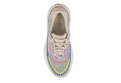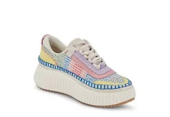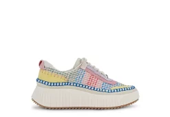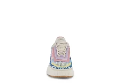 Texture gets the spring touch with the Dolen women’s sneaker from Dolce Vita. Featuring a woven knit & suede upper with a funfetti design, this lace-up shoe also has a rear pull tab for easy entry. The lining soothes your foot while the platform & rubber sole add bouncy height with good traction.