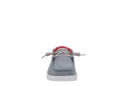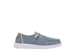 Relax into your passion with the HEYDUDE Wendy Braid women’s slip-on sneaker. With a soft, chambray blend upper featuring flex & fold technology and elastic laces for a secure fit, this slip-on sneaker is machine washable for easy maintenance. The removable Memory Foam insole and leather lining offer ergonomic comfort and cushioning, while the ultralight outsole lets you explore unfettered.Â