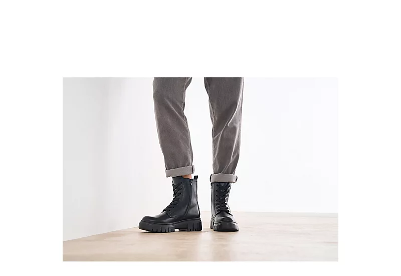 Tread through the cold season in the Rudy women’s combat boot from Limelight. With a faux suede or leather upper featuring a rear pull tab for easy entry, this inside zip boot has a rugged silhouette with feminine design. The chunky traction sole keeps you grounded in edgy style.