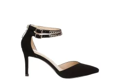 Embolden your style with the Josephine women’s pump from Michael By Michael Shannon. This pump features a faux nubuck upper, dual ankle straps with metallic hardware details and adjustable buckles with a back zipper for a secure fit. The pointed toe and 3¼” stiletto heel offer a flattering touch, perfectly complementing dresses, skirts, or pantsuits.Â